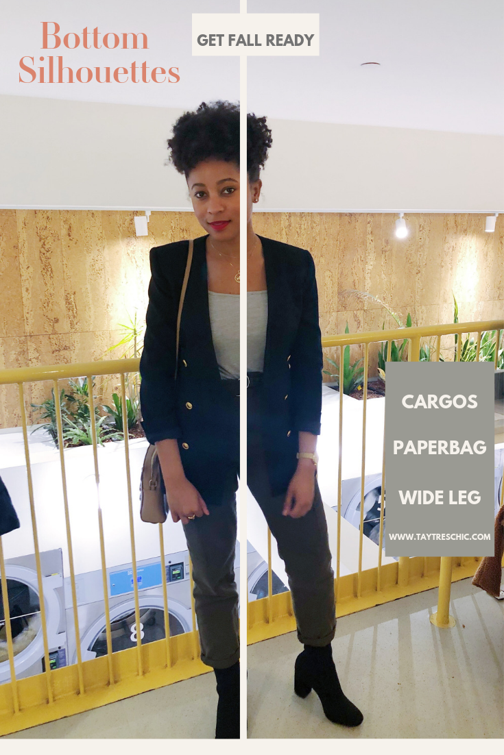 We talked about utility style in my post this past spring about boiler suits here. This fall this style has been elevated and it’s not your summer camp cargo. While not new this silhouette has blossomed over and it is back in a major way this fall season. I have found cargo pants with a pegged hems pair well with chunky combat boots, or even a sleek sandal heel.